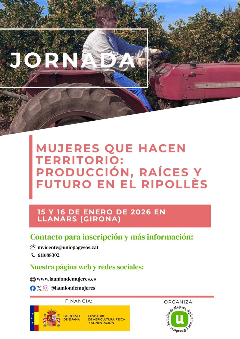 La Unió de Dones Agricultores i Ramaderes organitza una jornada GRATUÏTA de "DONES QUE FAN TERRITORI: PRODUCCIÓ, ARRELS i FUTUR", se celebrarà els dies 15 i 16 de gener de 2026 en horari de 9:30 a 18:30 a la localitat de Llanars.