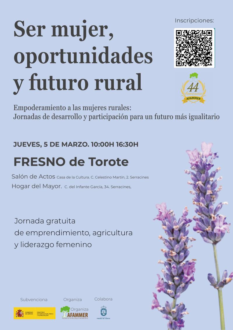 L’AFAMMER (Association des familles et des femmes en milieu rural), avec le soutien financier du ministère de l’Agriculture, de la Pêche et de l’Alimentation, organise l’événement gratuit « Être une femme, opportunités et avenir rural », un espace de réflexion et d’apprentissage sur le rôle des femmes dans le développement des zones rurales, qui s’inscrit dans le cadre du programme « Autonomisation des femmes rurales : journées de développement et de participation pour un avenir plus égalitaire ».